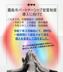 きりしまの未来に責任を果たします! 霧島市は自然環境・交通環境等に関してもとても恵まれた地域です。この地域に住み暮らす私たちは次世代へこの環境を引き継ぎ、成長させる事の責任を果たさなければなりません。こんなに恵まれた地域といえど、少しでも気を抜いた時期があれば即座に影響を受ける事になり得ると感じております。次世代へ引き継ぐ責任を共に果たしましょう。